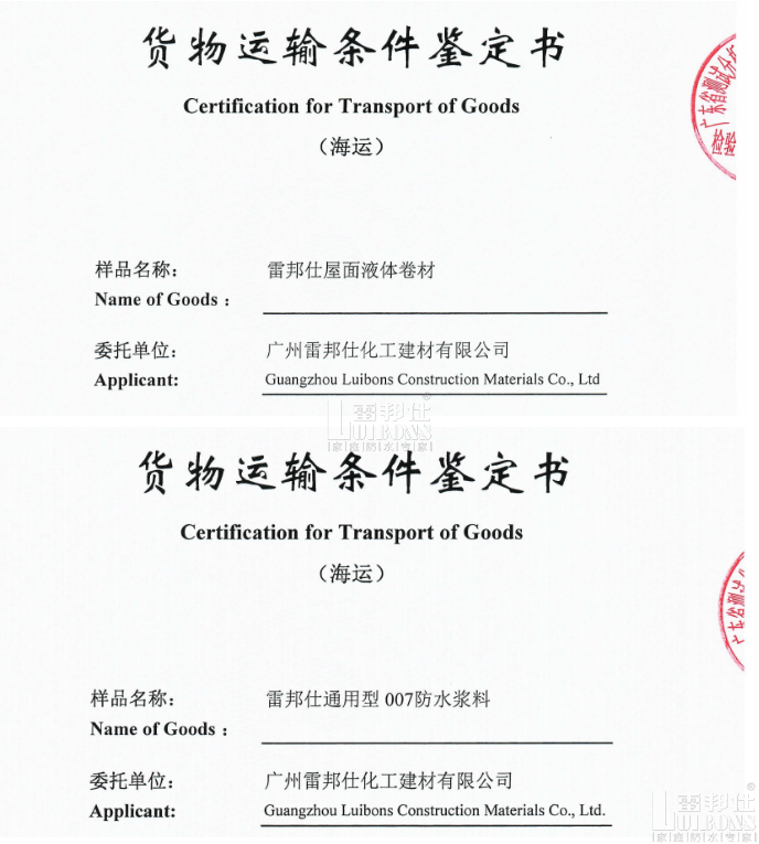 為了保證運(yùn)輸?shù)陌踩装钍讼驈V東省測試分析研究所申請貨物運(yùn)輸條件鑒定,該鑒定依據(jù)國內(nèi)外有關(guān)危險(xiǎn)貨物運(yùn)輸?shù)姆ㄒ?guī)、標(biāo)準(zhǔn),對貨物的運(yùn)輸安全性作出鑒定和建議,保證了出口貨物的安全。