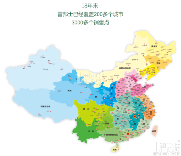 現今,雷邦仕的經銷渠道已經覆蓋27個省的200多個城市,全國設有200多個專賣店與3000多家經銷網點,產品遠銷至東南亞、澳大利亞、中東、非洲等地區,憑借卓越的產品品質和專業服務廣受市場青睞。