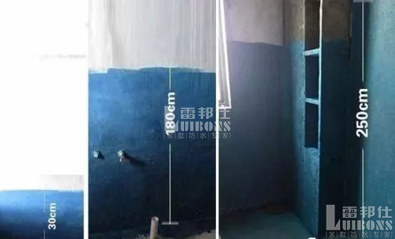 對于衛生間防水的施工,首先要說明的是干濕分區的情況下,防水涂料的施工標準是不一樣的,通常干區一般刷到墻面0.3m,濕區一般是1.8m,如果有浴缸,與浴缸相鄰的墻面防水高度應比浴缸高處30cm。