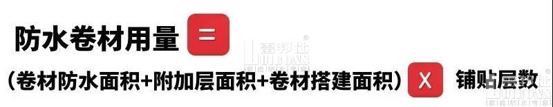 防水卷材用量主要是由卷材防水面積、附加層面積及卷材搭建面積三部分組成,它的計(jì)算公式為: