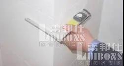 4、【堵漏王封堵】對(duì)陰陽角進(jìn)行抹弧處理,材料宜選用堵漏王封堵,保證材料能與基體層混凝土墻地面結(jié)合成一個(gè)體系,不易老化、耐水性好。堵漏王填實(shí)后,圓弧角可以用弧形鏝刀處理,待堵漏王表干后刷一遍涂料,鋪設(shè)無紡布,再刷上一層涂料即可。